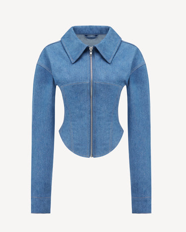 Get ready to rock in this slim-fit body suit style Nina Jacket! Oversized cuffs and 100% cotton denim make for a close and comfortable fit. Zip up and strut your stuff, and don't forget the buttoned cuffs for added flair!