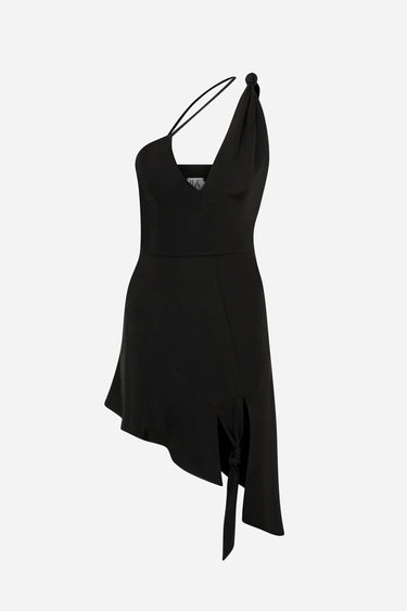 Make a statement with the ILA ALLURE One Shoulder Mini Dress. You'll be the talk of the town with its sleek and trendy black design, complete with a playful front slit and knot detail. From day to night, this dress has you covered with its versatile and fashion-forward style.