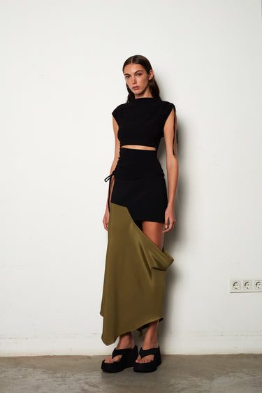 Feel stylish and extravagant in the ILA GARCIA Leg Revealing Midi Skirt! The one leg cut design adds a unique touch to this midi skirt, making it perfect for any party or holiday event. Elevate your fashion game with this must-have piece.