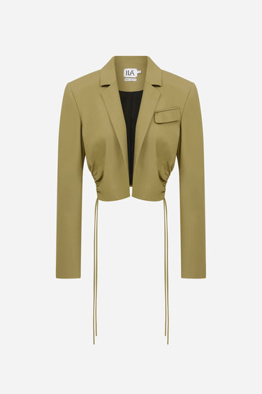 Elevate your wardrobe with the stunning ILA RUTH Cropped Blazer and its captivating side details. In a trendy khaki hue, this blazer effortlessly pairs with its matching skirt for a coordinated and polished look. Make an unforgettable fashion statement with this must-have set.