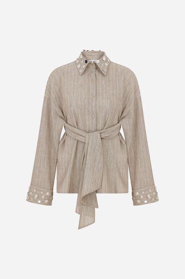 ILA MOSES Open Back Linen Shirt with Handmade Mirror Details