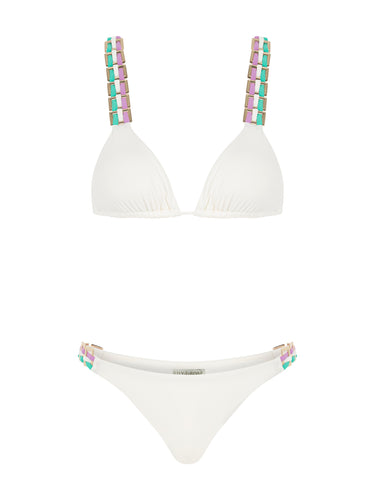 Introducing the Lily&Rose SORAYA Bikini, perfect for the sporty chic gal. This milkfoam-colored two-piece will keep you stylish and comfortable whether lounging at the beach or playing a game of beach volleyball. Get ready to turn heads with this must-have summer essential.