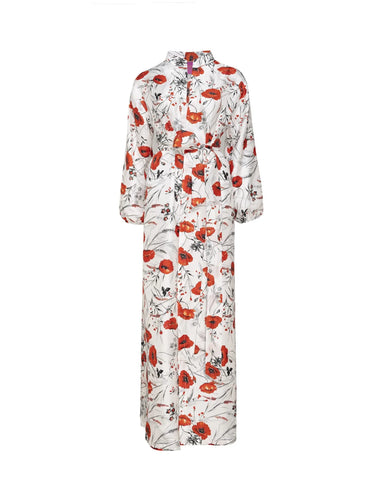 The Penelopa Silk Caftan is designed with a stand round collar, open front, and matching long belt for a chic yet comfortable look. It's semi-balloon sleeves with elastic band hems add a touch of sophistication while ensuring a perfect fit.