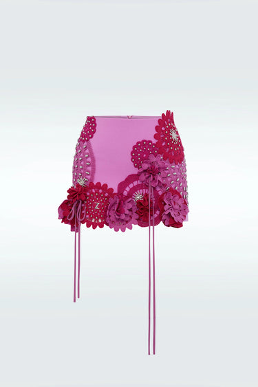 Zeynep Tosun 3-D Flower Stud Skirt Pink