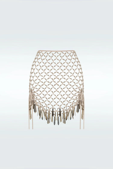 Dress to impress in this chic, hand-knitted mini skirt from Zeynep Tosun. Adorned with metallic round and triangular beads, this skirt is a showstopper. But it's not just about style - it also comes with a comfortable lining of shorts and skirt, making it the perfect choice for any occasion. Get ready to turn heads and feel confident in this versatile piece.