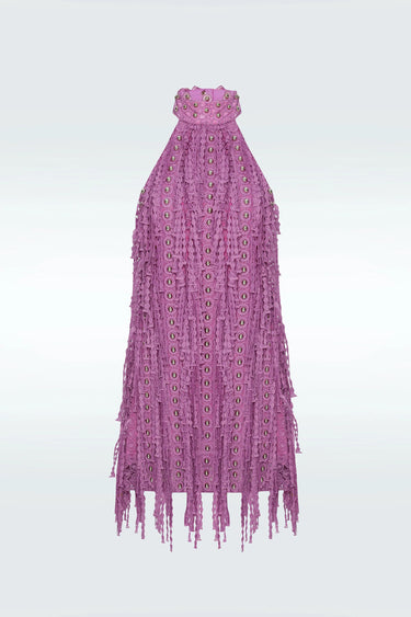 Elevate your style with this stunning backless broderie RAIN dress from Zeynep Tosun. Adorned with delicate embroidered fringes and glamorous metal accents, this dress is a must-have for any fashion-forward wardrobe. Get ready to turn heads and make a statement with this unique and stylish dress.