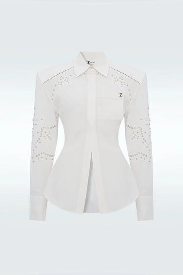 Experience the luxurious comfort and elegant style of our Zeynep Tosun Cotton Broderie shirt. Adorned with metallic studs, this shirt effortlessly combines fashion and function. The lightweight cotton fabric ensures breathability and easy movement, making it the perfect choice for any occasion. Step out in confidence and stand out from the crowd with our stylish and versatile shirt.