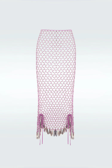 Dress to impress in this chic, hand-knitted midi skirt from Zeynep Tosun. Adorned with metallic round and triangular beads, this skirt is a showstopper. But it's not just about style - it also comes with a comfortable lining of shorts and skirt, making it the perfect choice for any occasion. Get ready to turn heads and feel confident in this versatile piece.