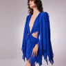 Experience the seductive and glamorous allure of the FARDA V NECK CUTOUT WINGED MINI DRESS, featuring a plunging v-neck and back cut-out. The stunning stone trim and long slit sleeves add a touch of sophistication, while the stripe details hanging from the hem and sleeves create a unique and eye-catching look. Elevate your style and make a statement in this must-have dress.