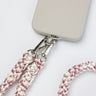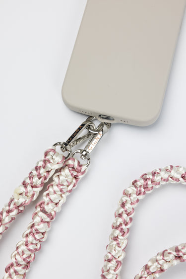 Spice up your phone with RAI Jain's Pink and White Satin phone strap! Say goodbye to boring phone accessories and add a touch of playful style to your daily life. Never lose your phone again with this fun and functional strap that doubles as a fashion statement. (No more digging through your bag for your phone!)