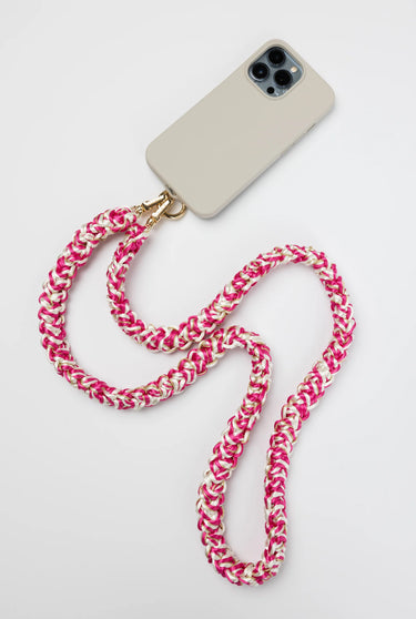 Jazz up your phone with our XL RAI Red Phone Strap! This satin rope strap in red and beige adds style and convenience to your phone, making it easier to carry and stand out in a crowd. Who says you can't have fashion and function in one?