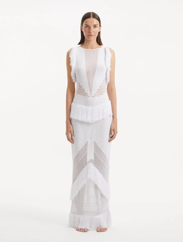 Adding a whimsical charm to the elegant white are the fringe details that sway gently as you move. These fringes are like whispers of a cool breeze on a warm day, their gentle movement adds a playful dynamism to this chic piece.