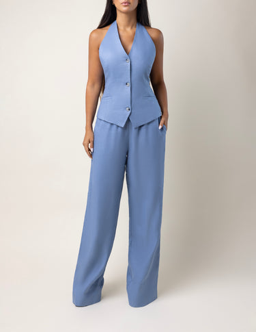 Experience effortless style with this vest, featuring an open back to keep you cool on summer days. From the office to a casual day out, pair it with the matching pants for a versatile addition to your wardrobe basics. Elevate your fashion game and make a statement with this must-have piece!