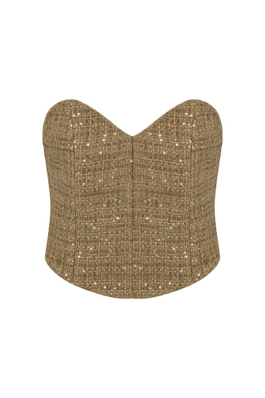 Sparkle and shine in our Muse For All ERICA bustier. Made from high-quality tweed, this bustier is designed to elevate any evening look. Complete the outfit with our matching pants for a head-turning, sophisticated ensemble. Get ready to make a statement with our ERICA bustier.