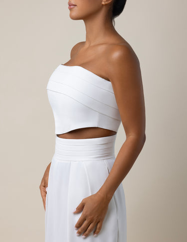 The LESLIE bustier by Muse For All is a customer favorite, featuring a strapless top and elegant loose-fit pants made of high-quality nylon. The brand's bestseller suit offers a versatile and stylish option for any occasion.