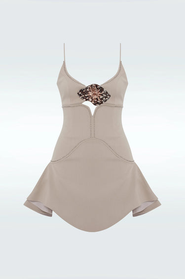 Make a statement in this one-of-a-kind dress! The stunning ruffle pleats and intricate metal accessory detailing, hand-embellished with metallic accents, create a unique and stylish look that will turn heads. Whether you're dressing up for a special occasion or just want to stand out in a crowd, the Zeynep Tosun Grace Dress is the perfect choice. It's a must-have addition to your wardrobe that will make you feel confident, elegant, and effortlessly chic.