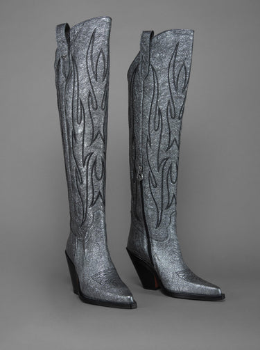 Elevate your style with LOIE Crown Anthracite Leather Boots. Crafted with sleek antracite leather and adorned with silver detailing, these boots will make a bold statement wherever you go. Stay stylish and comfortable with every step.