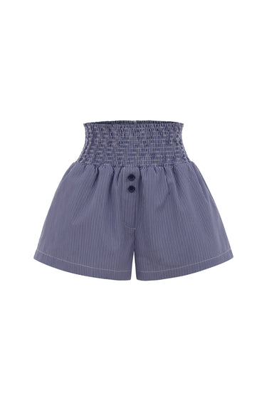 Elevate your summer style with Muse for All VESTA shorts. These navy-white striped shorts are made from comfortable cotton and come with a matching shirt. Enjoy effortless coordination and a chic, timeless look. Perfect for any warm weather occasion. Channel your inner muse and stand out in VESTA.