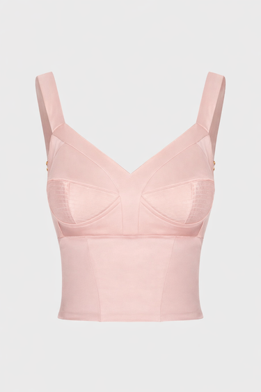 Adjustable straps and a discreet golden zipper at the back add refinement and functionality. A statement of modern femininity, perfect to wear with denim, high-waisted skirts, or structured blazers.