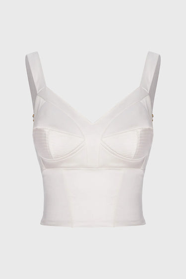 Adjustable straps and a discreet golden zipper at the back add refinement and functionality. A statement of modern femininity, perfect to wear with denim, high-waisted skirts, or structured blazers.